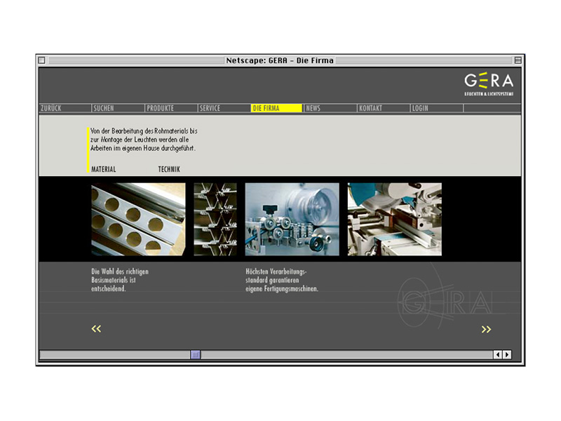 Entwicklung eines Corporate Designs für einen Leuchtenhersteller aus Thüringen, der auf Systemeinbauleuchten für hochwertige Küchen, u. a. Miele, Bulthaup, Gaggenau etc., spezialisiert ist. Neben einer Auszeichnung beim Design Preis Schleswig-Holstein 2001, die der Internetauftritt erhielt, wurde das gesamte Gera - Leuchten Corporate Design 2001 beim Design Preis Thüringen ausgezeichnet.